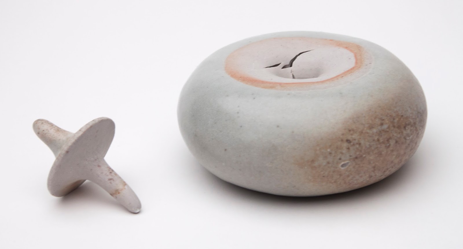 Det andra objektet jag valde att utforska är ett kärl som inte vad jag har kunnat hittat blivit gjort i keramik, utan är ett plast eller aluminium objekt för att bevara värme. Termos. På Röhsskas museum såg jag industridesignade termosar. Jag blev intresserad av att utveckla en keramisk termos som anspelade på de termosar som tas med ut på skogsutflykten, men som funktionsmässigt antagligen inte skulle uppfylla kraven på hållbarhet och lätthet. Då jag tidigare undersökt kåsan på liknande sätt, kändes det som en spännande utmaning.